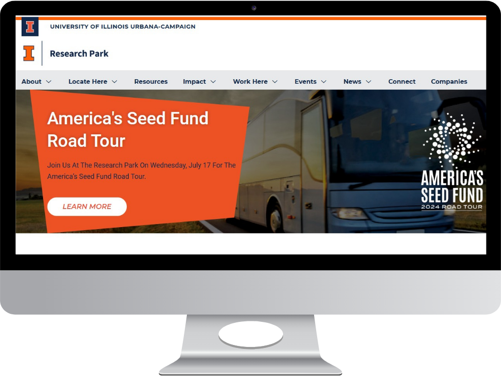 Located on campus, the Research Park at the University of Illinois Urbana-Champaign is a technology hub for corporate research and development operations and startup companies. Within the Research Park, there are more than 120 companies employing students and full-time technology professionals. The Research Park and the EnterpriseWorks incubator are supportive spaces with programs, workshops, and tools for all its companies to use. Whether your company is just getting started, or whether you’re working for a Fortune 500 company, we provide a range of resources to meet the needs of our tenants